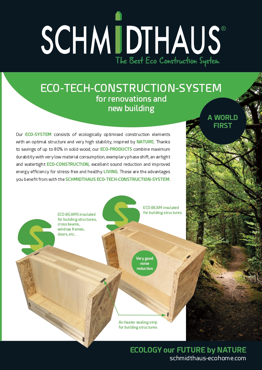 Discover the revolutionary SCHMIDTHAUS system, "The Best Eco Construction System", an inexhaustible source of inspiration and creativity for innovative constructions. Our approach always begins with the building’s ENVELOPE, an essential pillar for high-quality homes.
